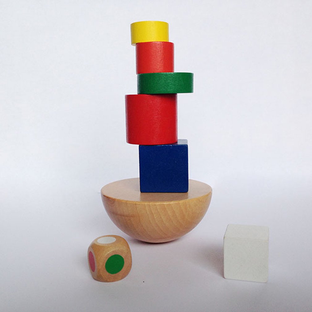 Tira el dado y coloca la pieza del color correspondiente al dado sobre la última pieza, empezando por la base, manteniendo el equilibrio de las piezas sin que caiga la estructura