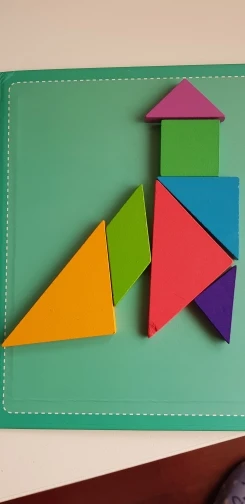 Contiene siete piezas de rompecabezas: cinco triángulos isósceles de ángulo recto (dos triángulos pequeños, uno mediano y dos grandes), un cuadrado y un paralelo